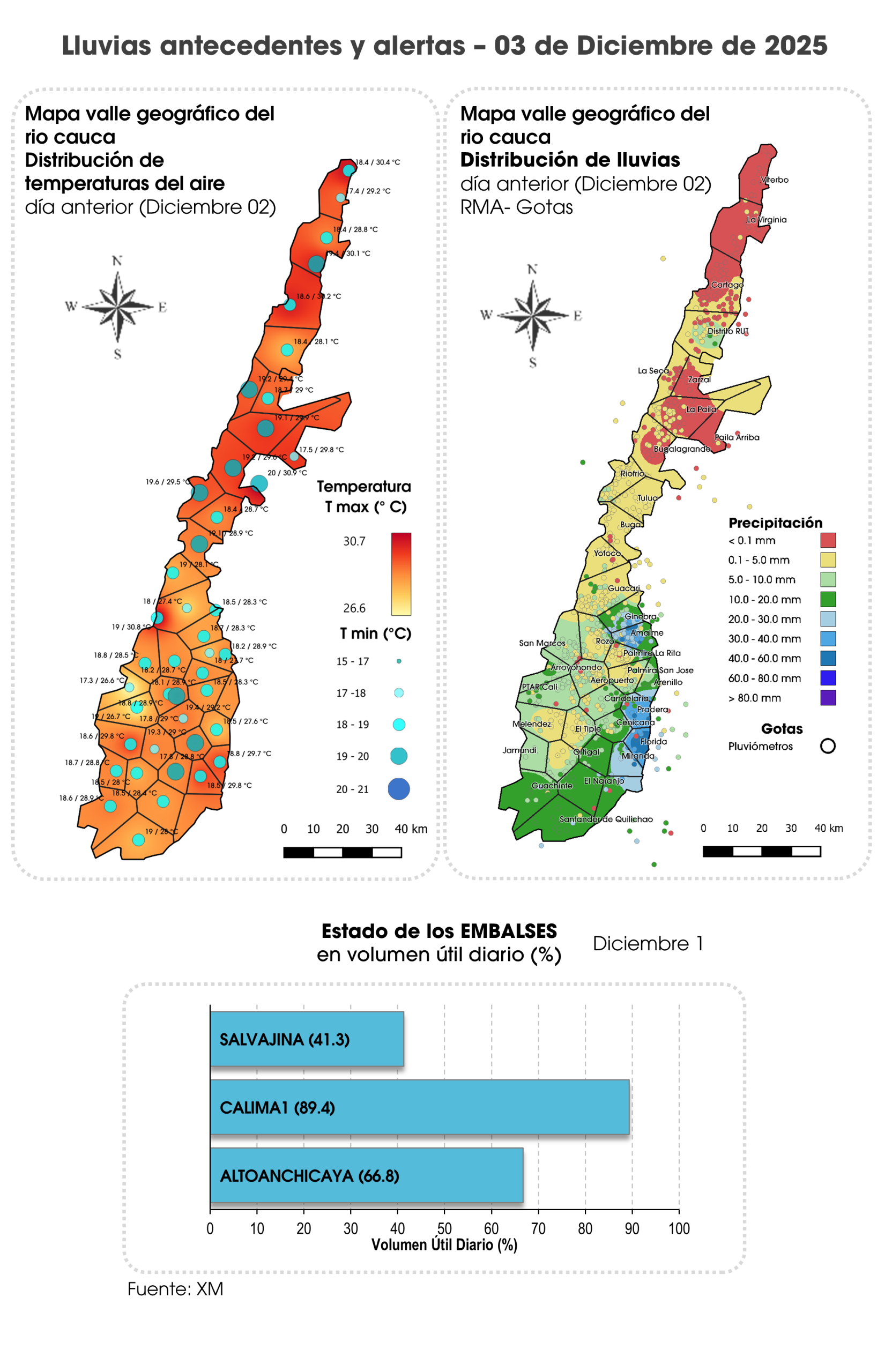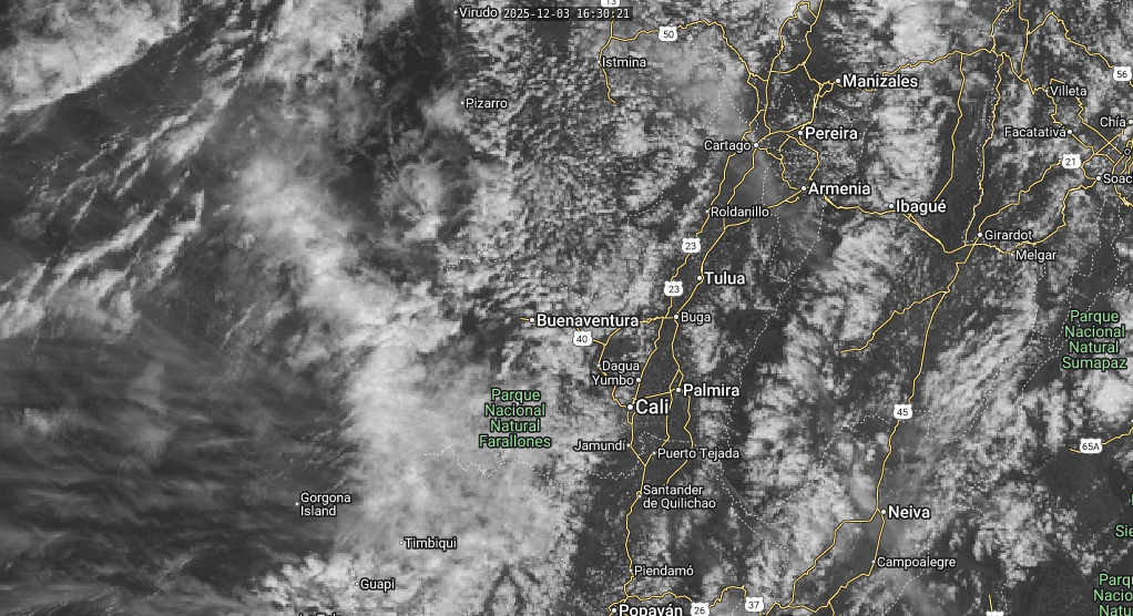 Pronóstico Diciembre 04: Se espera una jornada con cielo entre parcial y mayormente nublado e intervalos de lluvias ligeras en la tarde en el valle del río Risaralda, Norte 2b, Centro Sur, Sur y Guachinte. Incremento de lluvias en la noche en las zonas mencionadas