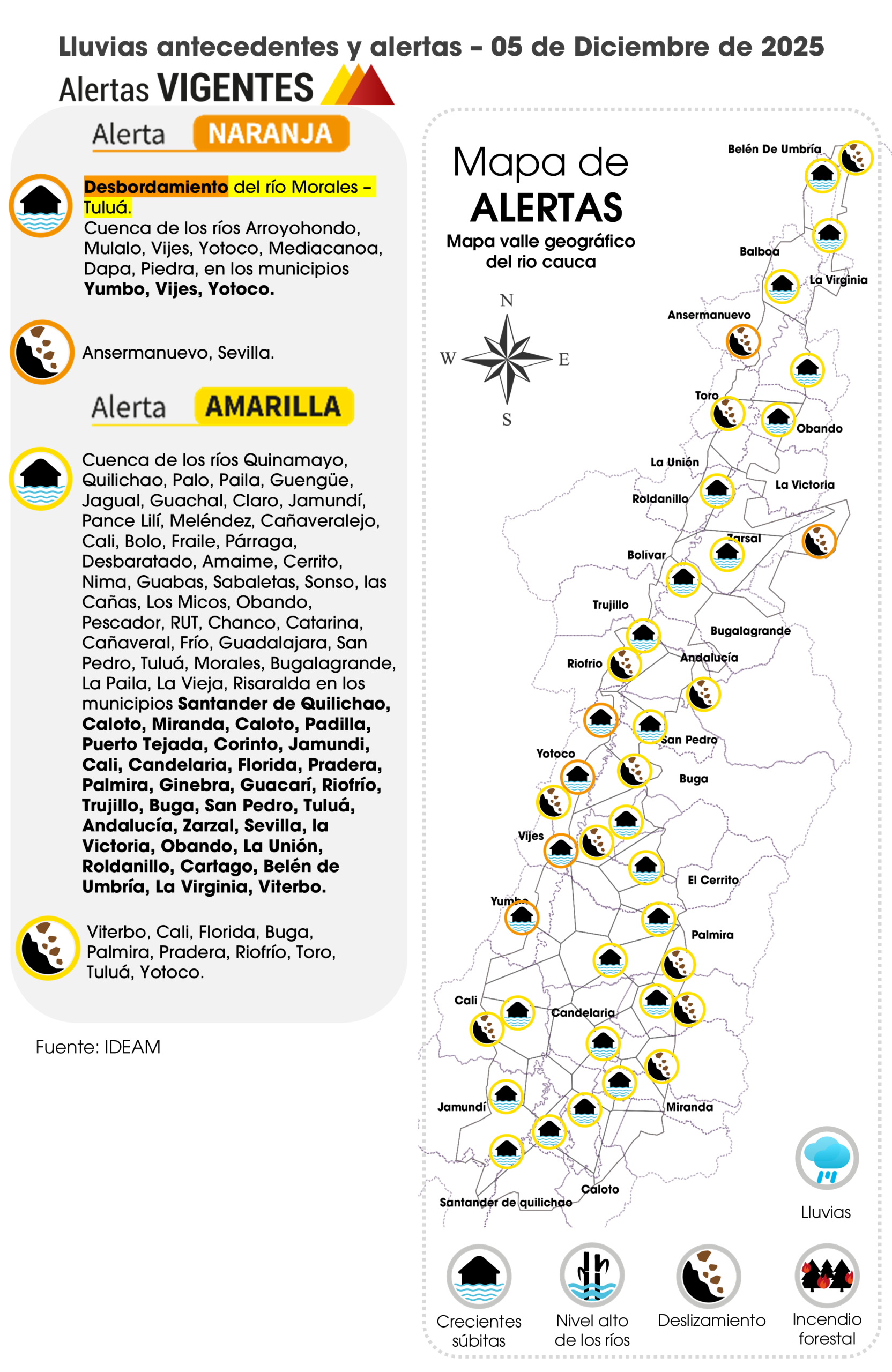 PRONÓSTICO DICIEMBRE 8: Este lunes festivo se caracterizará por presentar cielo entre parcial a mayormente nublado sin descartar intervalos de lluvias ligeras en la tarde y la noche en las zonas Norte 2b, Sur, Centro Sur y Guachinte, lluvias ligeras en el valle del río Risaralda.
