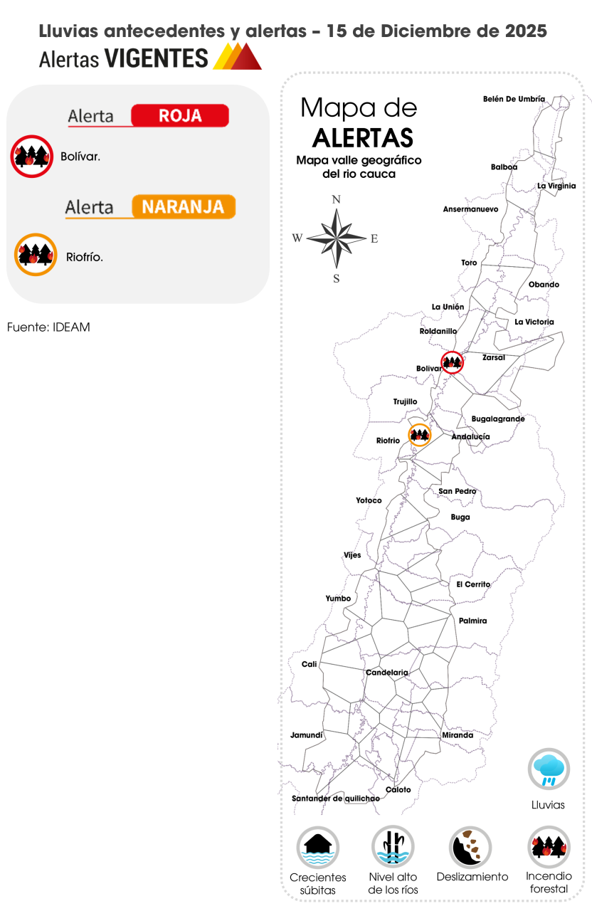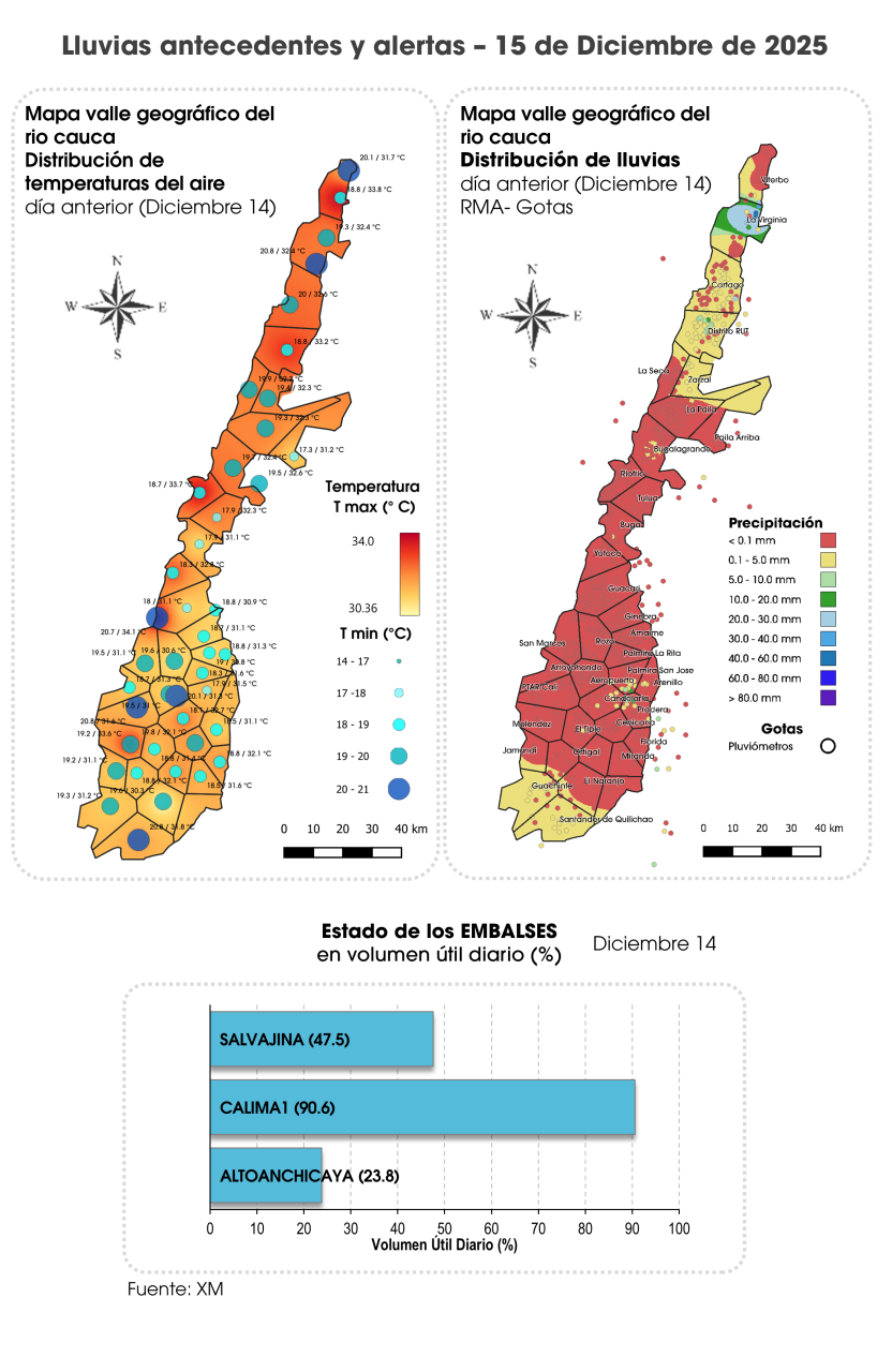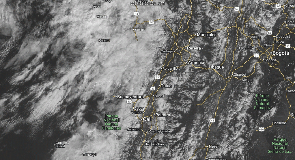 PRONÓSTICO DICIEMBRE 15: La jornada puede transcurrir con cielo mayormente cubierto y cubierto favoreciendo intervalos de lluvias ligeras en la tarde y la noche en el valle del río Risaralda, Norte 2b (Cartago), Norte 2b, norte y piedemonte de Centro Oriente, Guachinte y Sur (Santander de Quilichao).