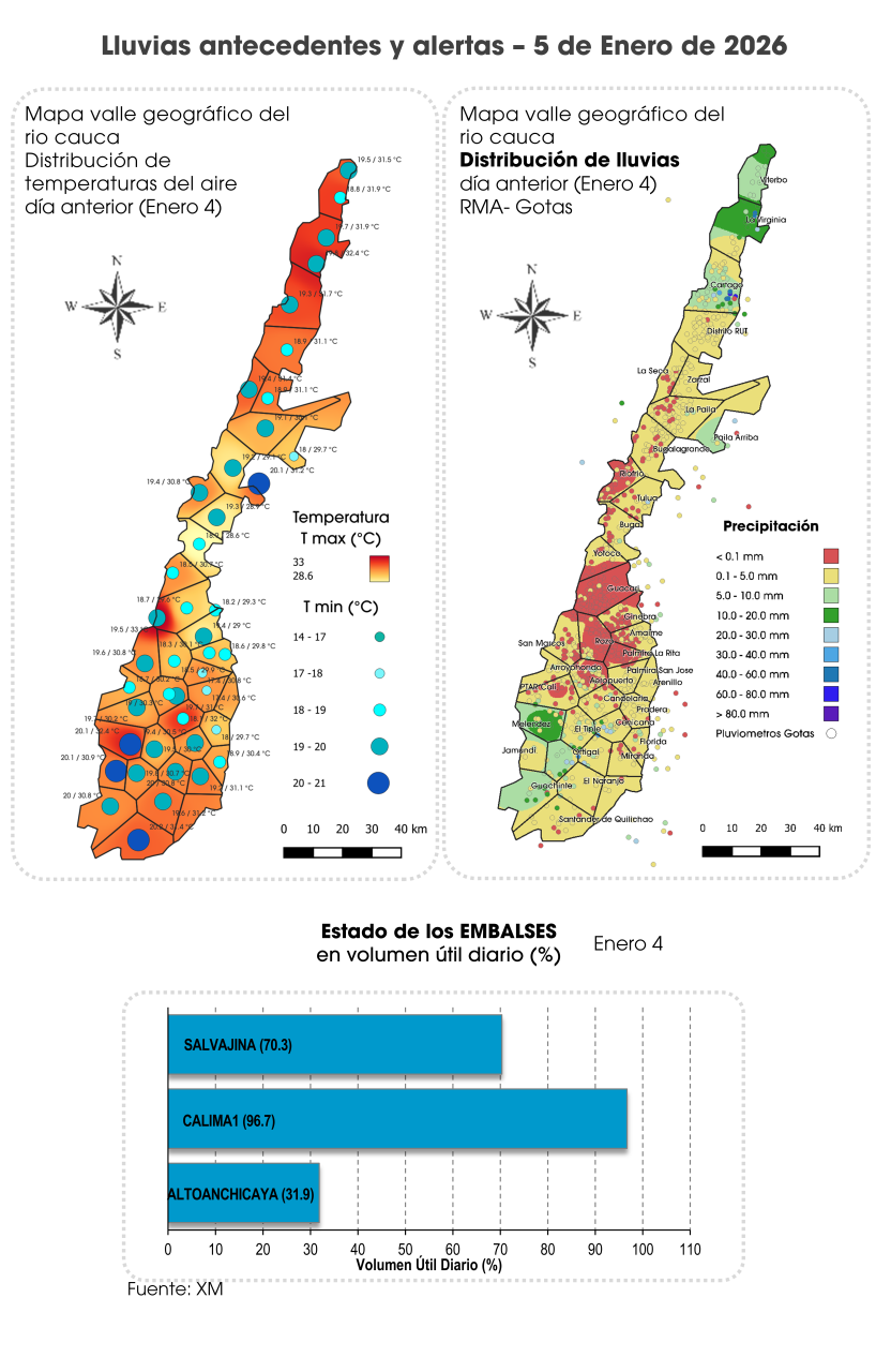 La mañana ha transcurrido con cielo mayormente nublado. Se estima en la tarde y noche la ocurrencia de precipitaciones ligeras a moderadas en Norte 2b. Centro Oriente, Centro Sur Sur y Guachinte, en las demás zonas lloviznas y/o lluvias ligeras.