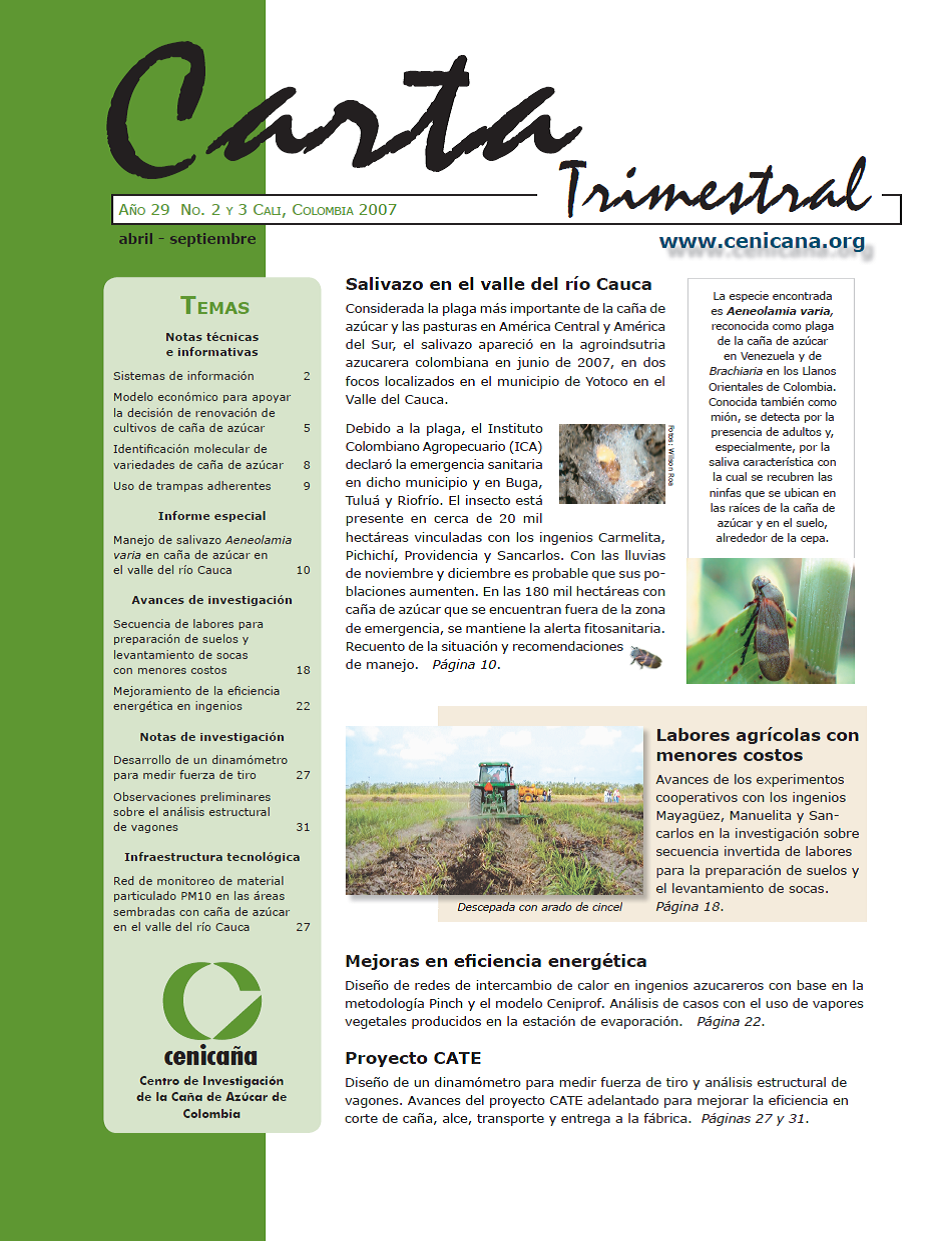 El salivazo Aeneolamia varia es una plaga de importancia económica en el cultivo de la caña de azúcar en el Valle del Cauca. Este insecto, en estado de ninfa se alimenta de las raíces de la planta, mientras que el adulto succiona la savia de las hojas.