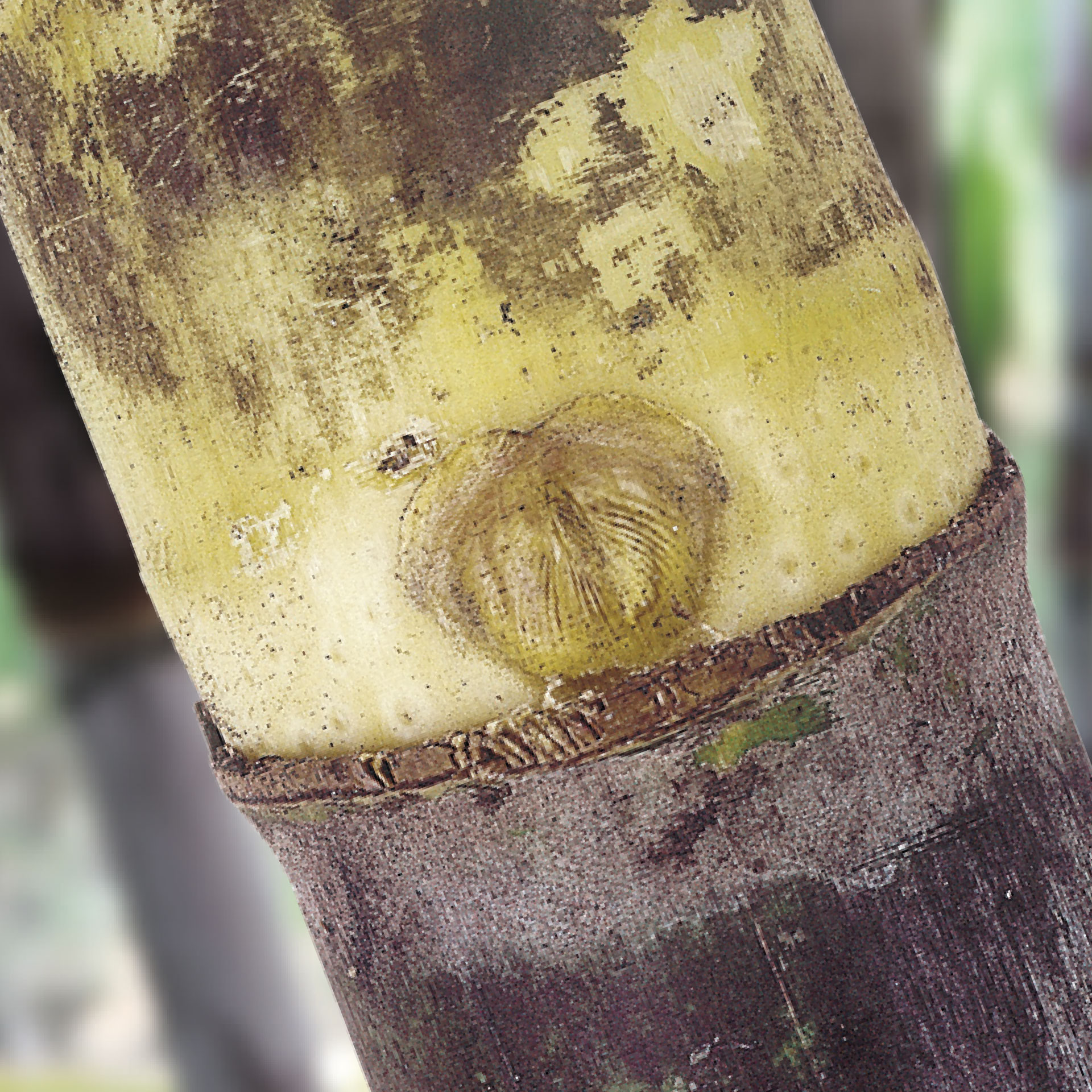 Largo, levemente decumbente, con disposición de los entrenudos en zig-zag suave. Entrenudo: cilíndrico, con longitud de 13 cm – 16 cm y diámetro de 30 mm – 32 mm. De color morado cuando está expuesto al sol. También puede notarse un color amarillo verdoso cuando el tallo está muy maduro. Tiene mucha cera y no tiene canal de yema. Nudo: tiene anillo de crecimiento de 2 mm de ancho. Yema: orbicular, no sobrepasa el anillo de crecimiento.